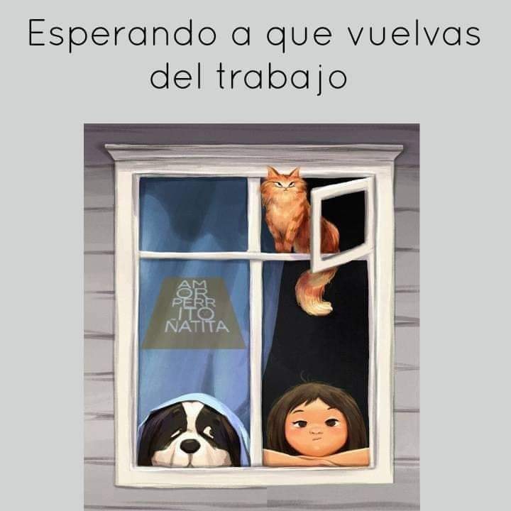 Esta imagen quiere ejemplificar que el problema de ansiedad por separación la sufren perros, gatos y niños pero si el niño tiene la compañía de perro y gato y ellos la del niño no deberían de tener el problema ya que entre ellos se están acompañando, pero todos ellos son dependientes de uno o varios adultos que los atienden y velan por ellos.