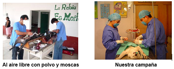 En nuestra campaña de esterilización a bajo costo NO hacemos lo siguiente: No competimos entre nosotros mismos ni con otros Médicos de otras campañas para saber quien hace mas cirugías en una hora o en un turno burocrático, no competimos para demostrar quien hace la cirugía lo mas rápido posible ni quien hace la incisión mas pequeña, no dejamos parte del útero en las hembras por no poder retirarlo por realizar incisiones muy pequeñas, en pocas palabras no operamos por competir sino por ayudar a los animales y como una labor social. Evitamos los riesgos mayores como entregar a los animales aún anestesiados cuando requieren todavía atención especial y son más susceptibles a complicaciones que no permitirán que despierten y mueran. No nos deslindamos de nuestra responsabilidad al entregar al animal , ofrecemos dos números telefónicos para que nos puedan consultar cualquier duda a cualquier hora posterior a la entrega del animal y hasta que sea dado de alta. A diferencia de las campañas gratuitas de algunas protectoras o del gobierno no gastamos el dinero en esterilizar mascotas tomándolo del presupuesto público dejando a la gente pobre sin atención médica ni desviamos recursos públicos generados por los impuestos que la gente paga. NO lavamos dinero como lo hacen en algunas campañas privadas. No hacemos de nuestra campaña un circo para divertir y entretener a los dueños. Realizamos nuestra campaña como una labor social y como una forma de cooperar para evitar la sobrepoblación de perros y gatos.
